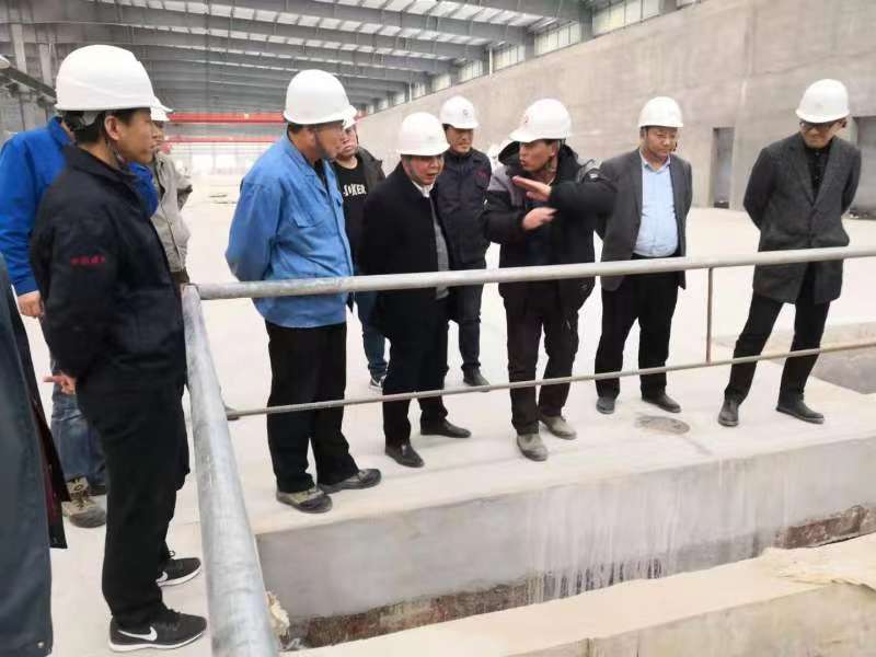 张冲总等领导一到濮阳公司,没有做丝毫停留,顶着凛冽的寒风,直接走向建设工地。一路前行,张冲总等首先来到原料车间和均化库施工现场,询问了原料设备的安装情况及均化库厂房的施工情况,朱宏欣一一做了汇报。接着,张总等来到熔窑施工现场,看到整齐干净的工作环境,张总感到很高兴,对项目组的工作进行了表扬。沿着主线向前,最后来到冷端施工现场,深圳凯盛科技的设备工程师向张总等介绍了冷端碎玻璃系统采用的抽尘降噪新工艺,张总听到后十分满意。检查结束后,张冲等领导在项目指挥部会议室听取了朱宏欣对濮阳项目建设情况的汇报。会上,马炎总经理指出,濮阳公司在做好超白光热材料项目建设的同时,要尽快启动研发中心、人才公寓以及配套后续深加工项目,以增加企业的盈利能力,解决员工的生活困难。