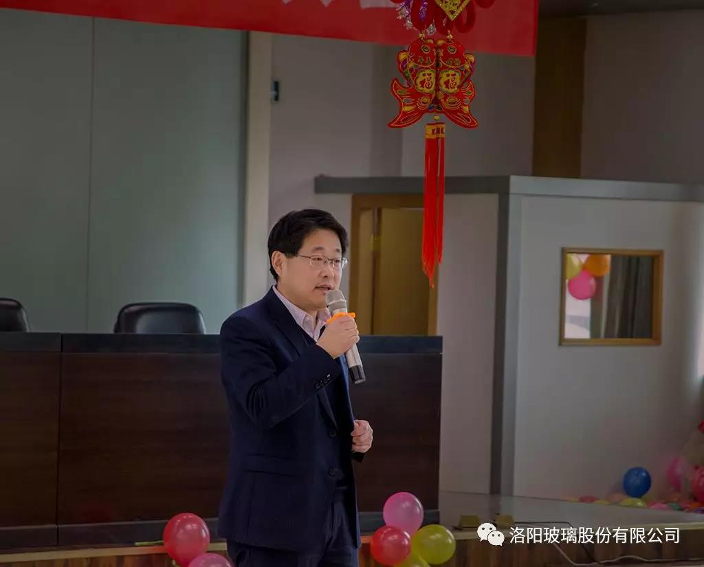 洛玻股份公司总经理马炎发表热情洋溢的致辞,他首先肯定了2018年公司取得的累累硕果,过的很充实,走的很坚定,蚌埠中显成功生产出世界最薄0.12毫米柔性触控玻璃,一举摘得我国工业领域最高奖——中国工业大奖、全国制造业单项冠军,龙门玻璃攻关三块大板玻璃成功生产,获利创历史最好水平。同时向一年来辛勤奋斗在公司各条战线、各个岗位上的全体干部员工,向心系公司发展的员工家属送上了新年祝福,并号召公司全体职工2019年按照 “提质量、调价格、增效益、降成本、压六金、谋发展”工作主线,敢于直面新挑战,吹响全面推动高质量发展的时代号角,开启洛阳玻璃发展的新征程,奋力谱写新篇章。